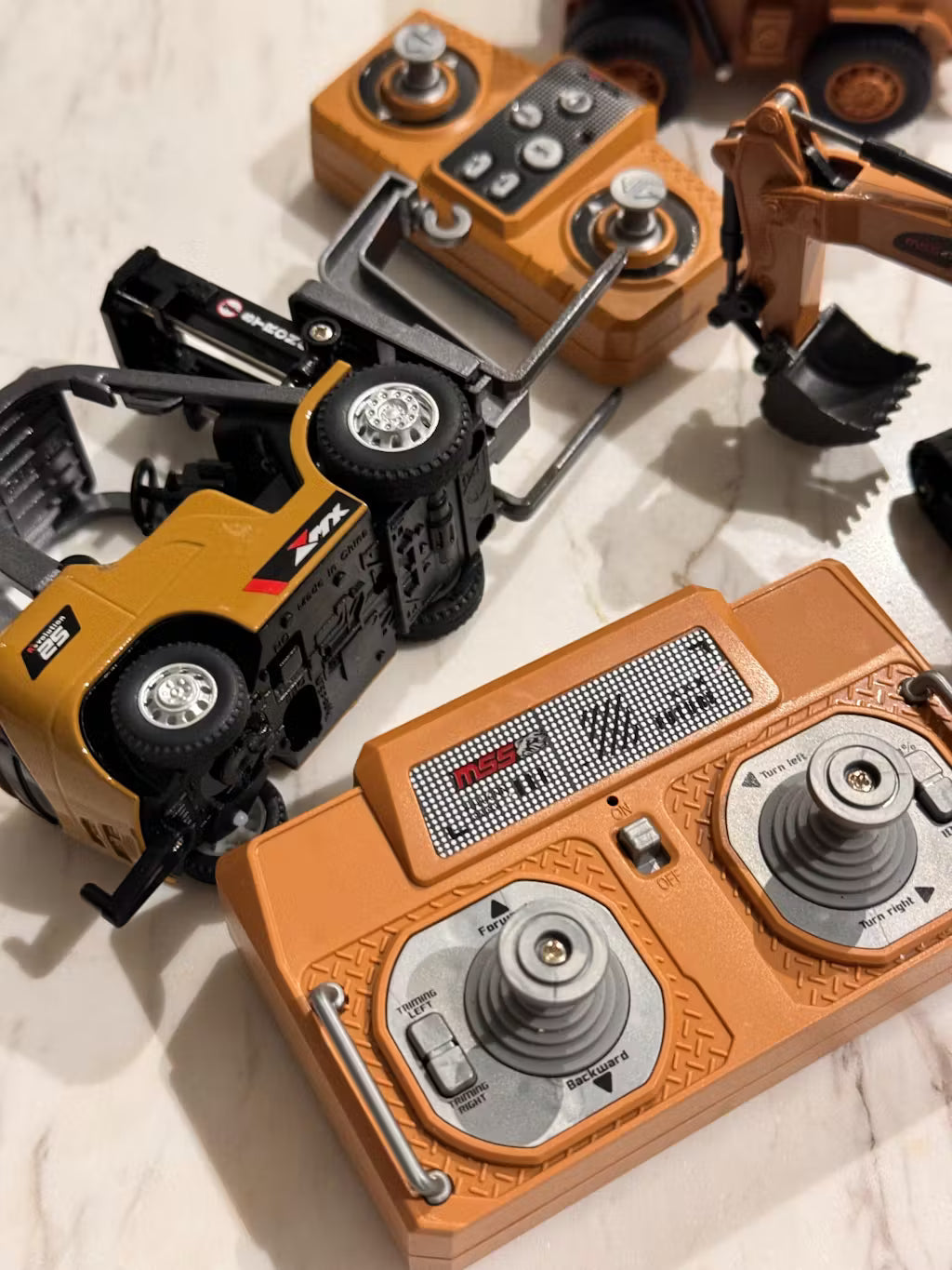 This isn't just one vehicle—it's a whole crew! Includes a mini excavator for digging, a dump truck for hauling, and a forklift for lifting. Perfect for role-playing and collaborative story-building.